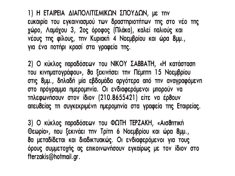 3, 2ος όροφος, Πλάκα, τηλ. 210.3613855) με αφορμή την ανακοίνωσης του